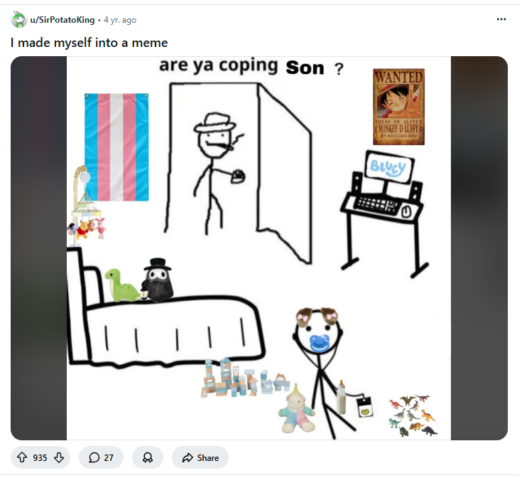 >>420893Did normies appropriate being an obese mexican who goons to rape vids
