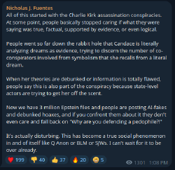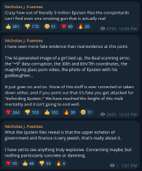 Fuentes is based for redpilling normies, but he needs to stop with the ironic epstein shilling. Also, he became more soft and doesn't identify as a White nationalist anymore.